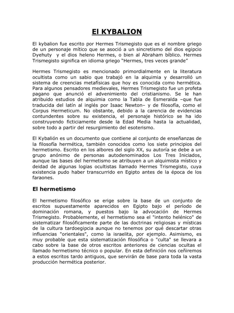 Hoy en día el término "hermético" es utilizado sin saber cuál es su verdadero sentido ni el origen de la palabra. Los libros se envían en formato pdf con la finalidad que sean compatibles con . Maestro de maestros, y estn recogidas en una pequea gran obra: Envíos gratis en el día ✓ comprá el kybalion fromato pdf en cuotas sin interés! En pdf al mejor precio en casa del libro.